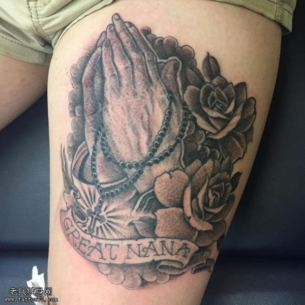大腿祈祷的双手纹身图案
