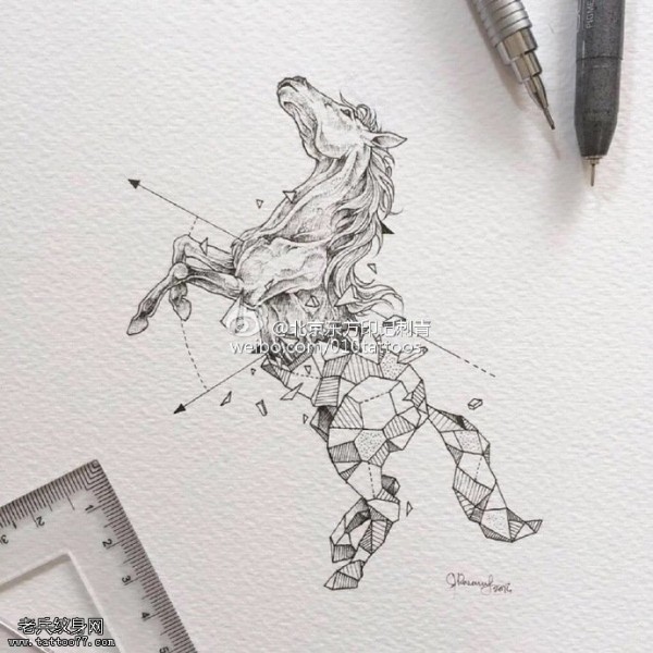 手稿写实几何图腾马儿纹身图案