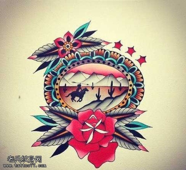 手稿镜子大山欧美纹身图案