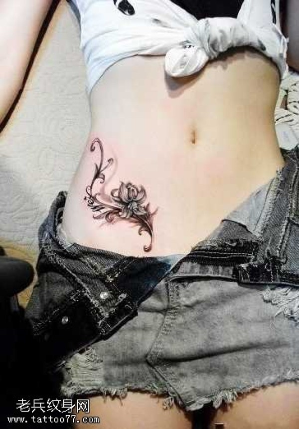女性腰部莲花花纹刺青_腰部纹身图案大全_纹身图吧