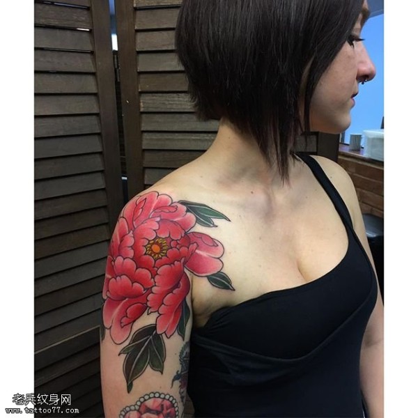 女生肩花纹身_15张女性双肩对称的肩花纹身图案作品图片