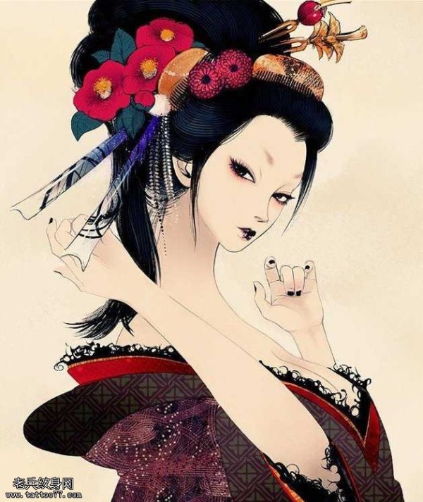 能面万媚纹身手稿_52张日式能剧面具纹身手稿图案素材欣赏