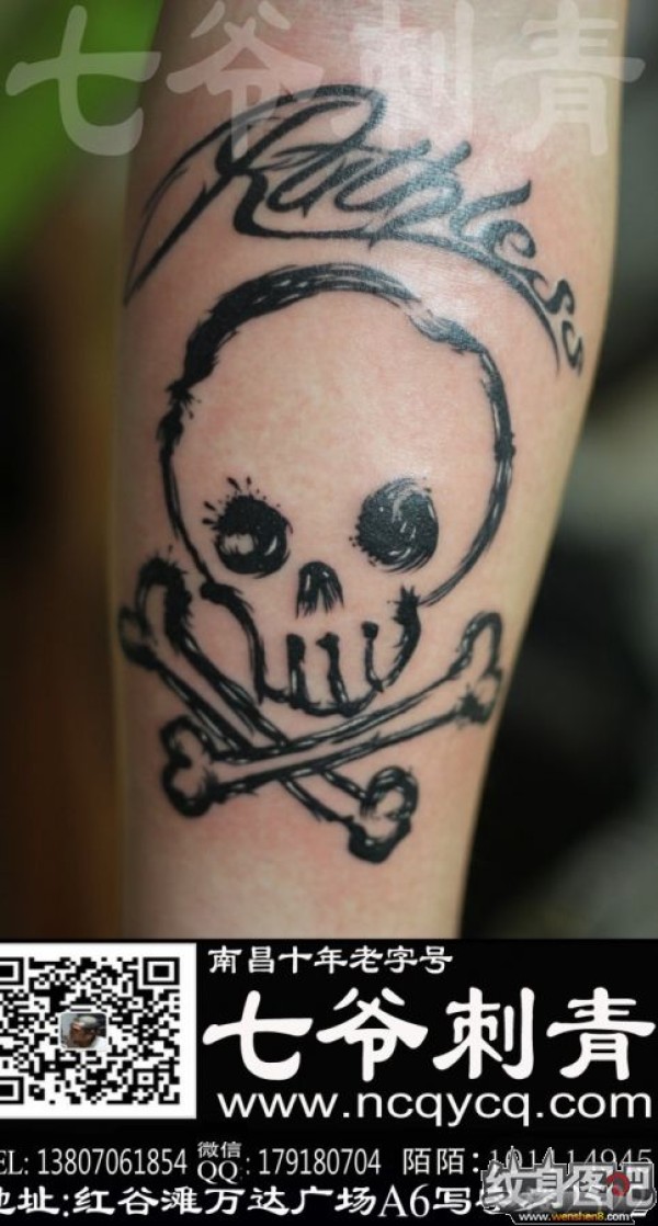 男人大臂黑白彼岸花骷髅_黑白纹身图案大全_纹身图吧
