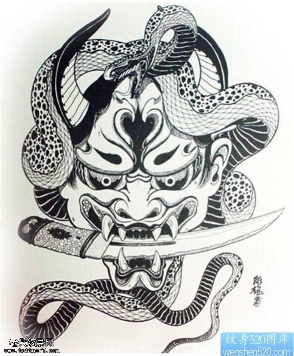 能面万媚纹身手稿_52张日式能剧面具纹身手稿图案素材欣赏