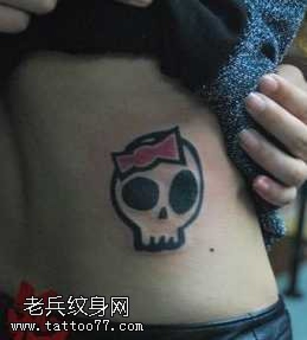 侧腰可爱的图腾骷髅纹身图案