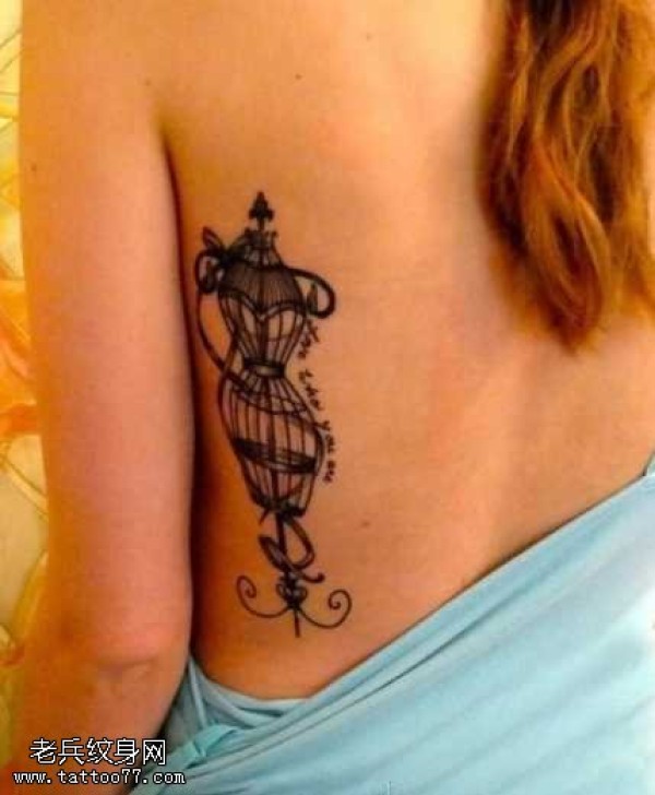 腰部鸟笼图腾纹身图案