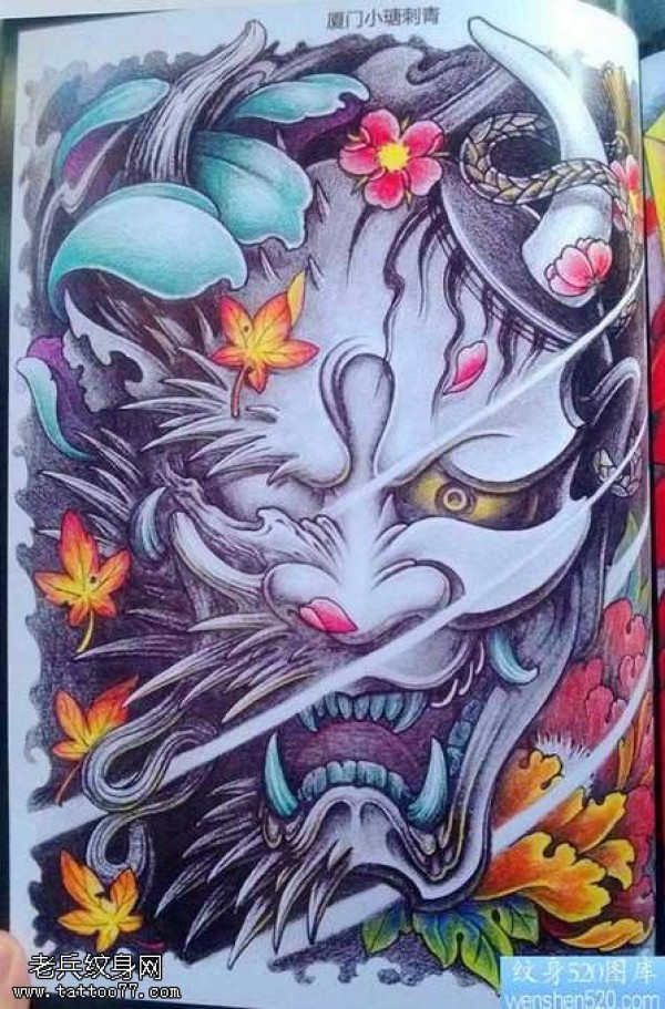 能面万媚纹身手稿_52张日式能剧面具纹身手稿图案素材欣赏