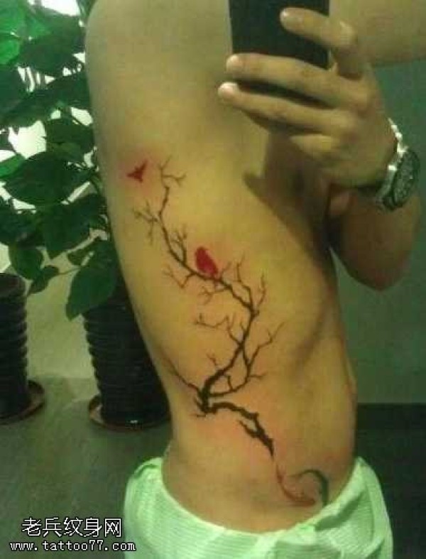 分享一款腰部时尚性感的蝶恋花纹身图案_腰部纹身图案大全_纹身图吧