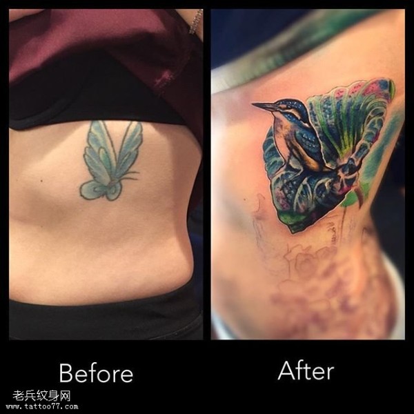 分享一款腰部时尚性感的蝶恋花纹身图案_腰部纹身图案大全_纹身图吧