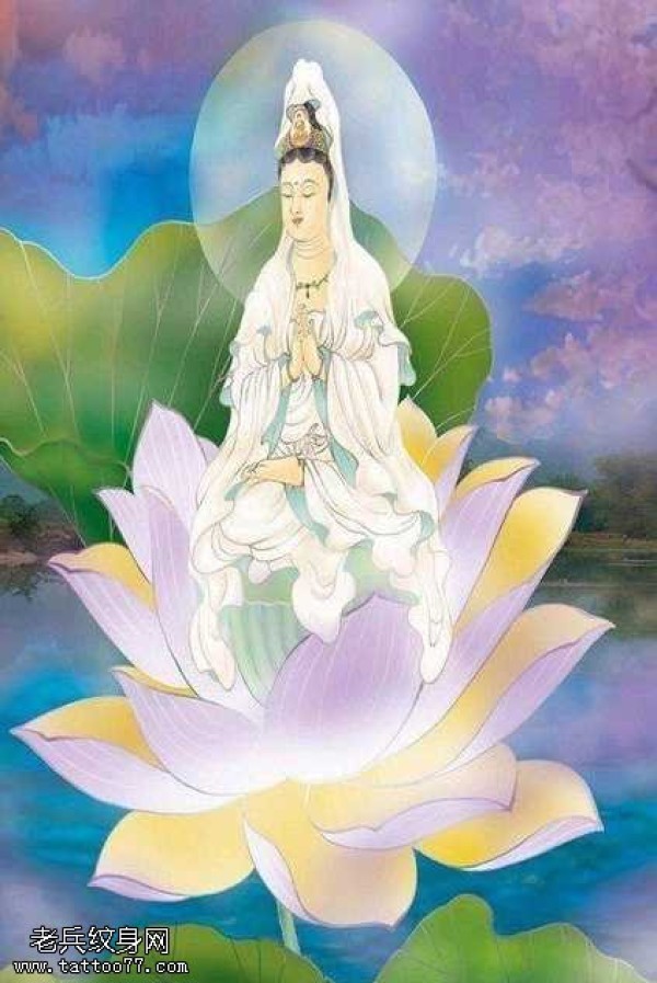 手稿观音坐莲纹身图案