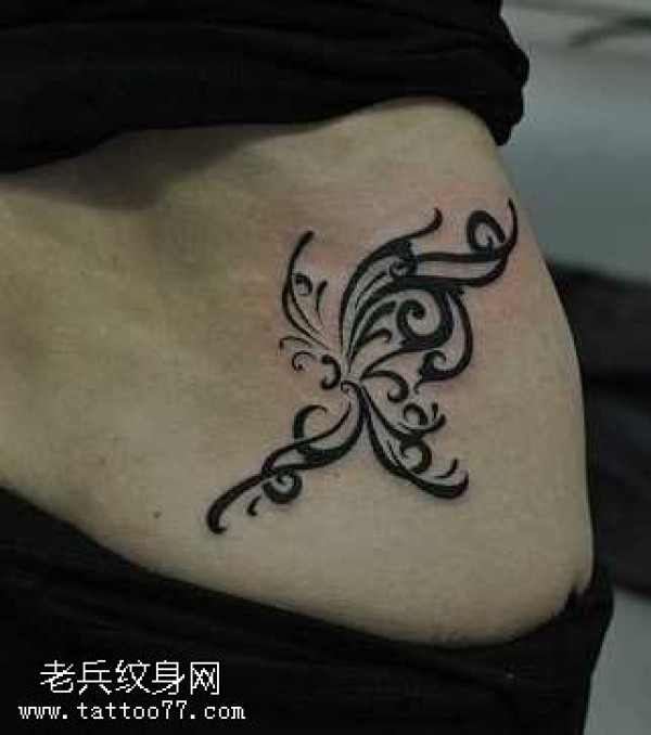 分享一款腰部时尚性感的蝶恋花纹身图案_腰部纹身图案大全_纹身图吧