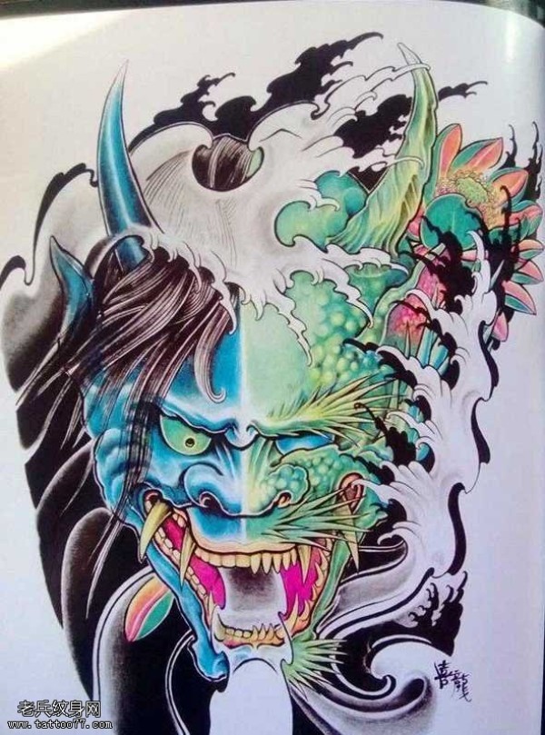 能面万媚纹身手稿_52张日式能剧面具纹身手稿图案素材欣赏