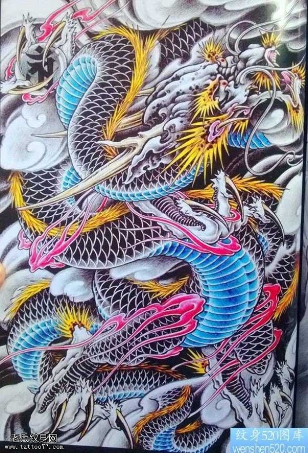 龙纹身手稿_一组老传统黑灰龙手稿纹身图案