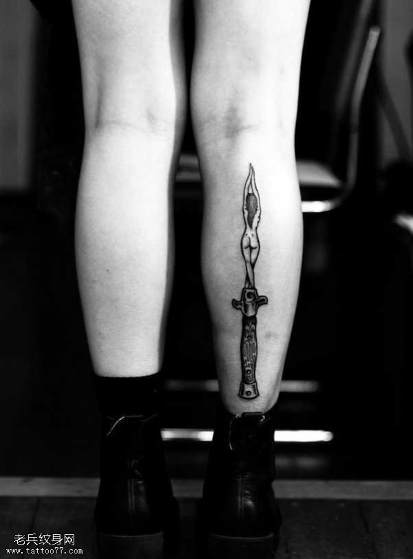 腿部刀剑纹身图案
