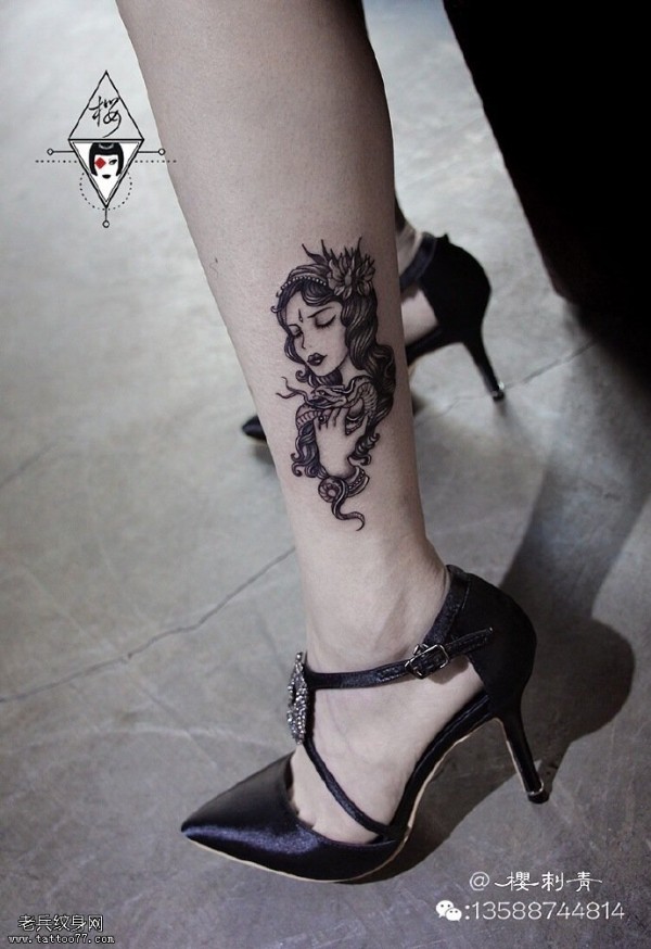 女孩腿部唯美刺青_腿部纹身图案大全_纹身图吧