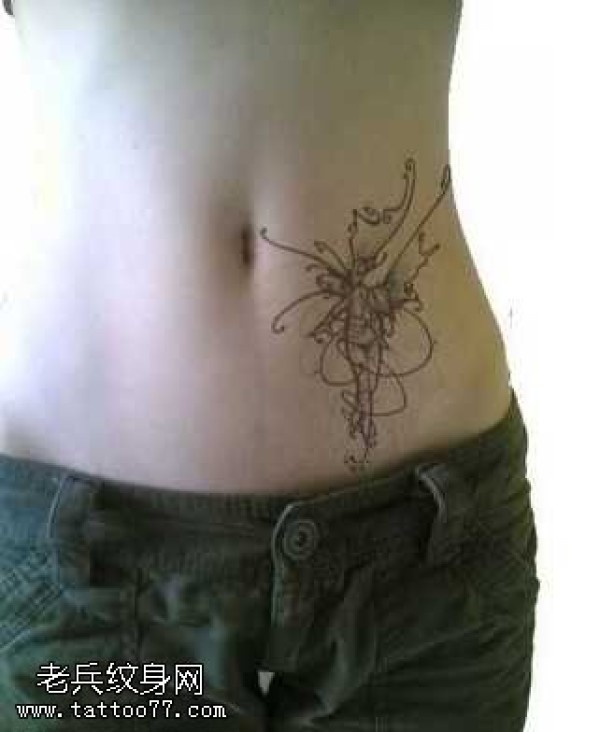 分享一款腰部时尚性感的蝶恋花纹身图案_腰部纹身图案大全_纹身图吧