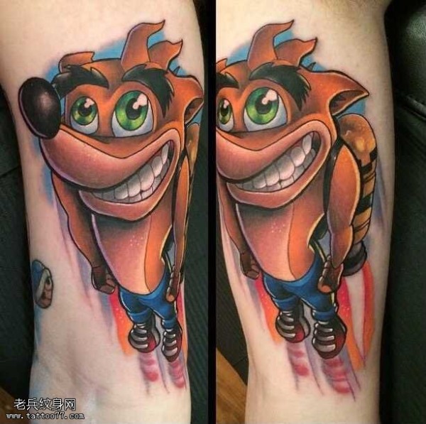 腿部猥琐卡通形象纹身图案