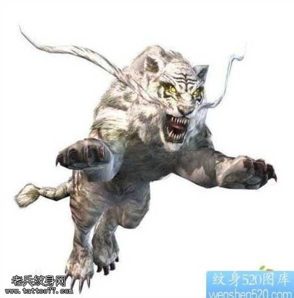 手稿猛虎下上之白虎纹身图案