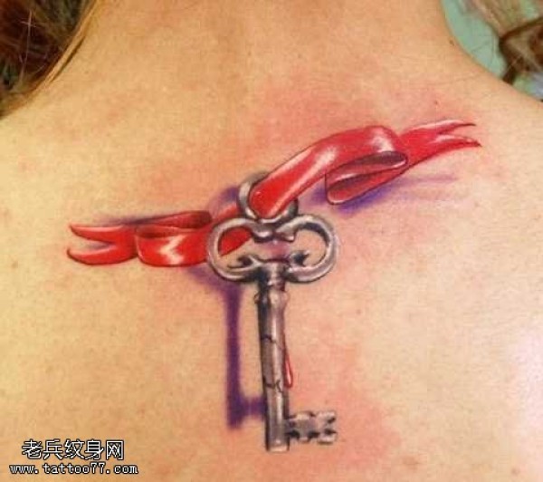 丝带钥匙3D纹身图案