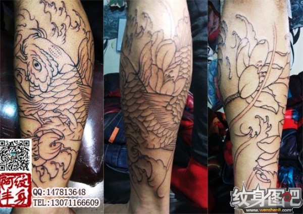 传统鲤鱼花小腿纹身_腿部纹身图案大全_纹身图吧