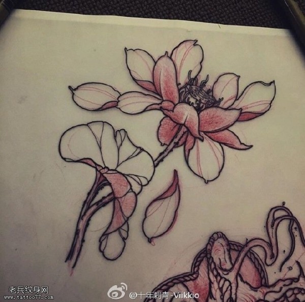 手稿经典素描莲花纹身图案