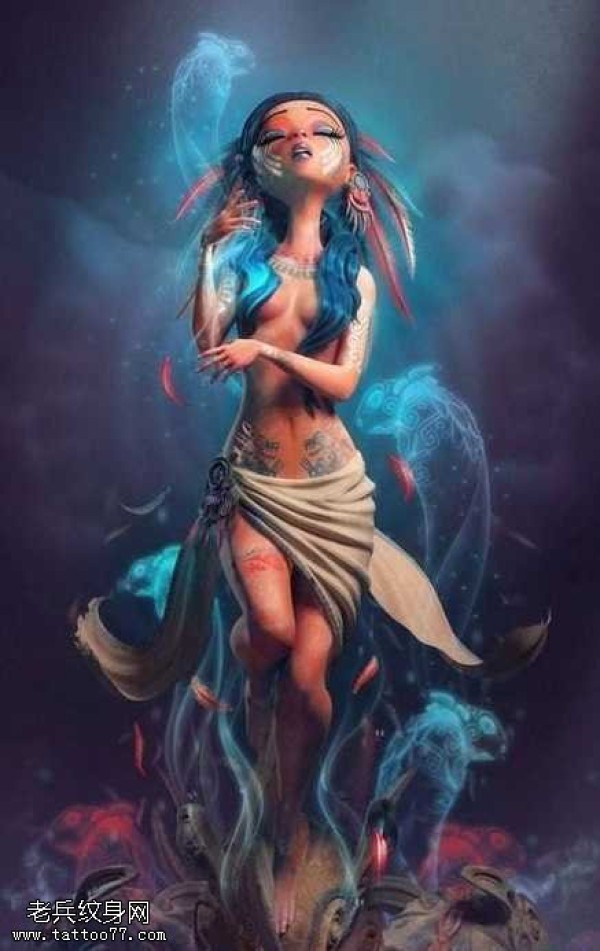 能面万媚纹身手稿_52张日式能剧面具纹身手稿图案素材欣赏