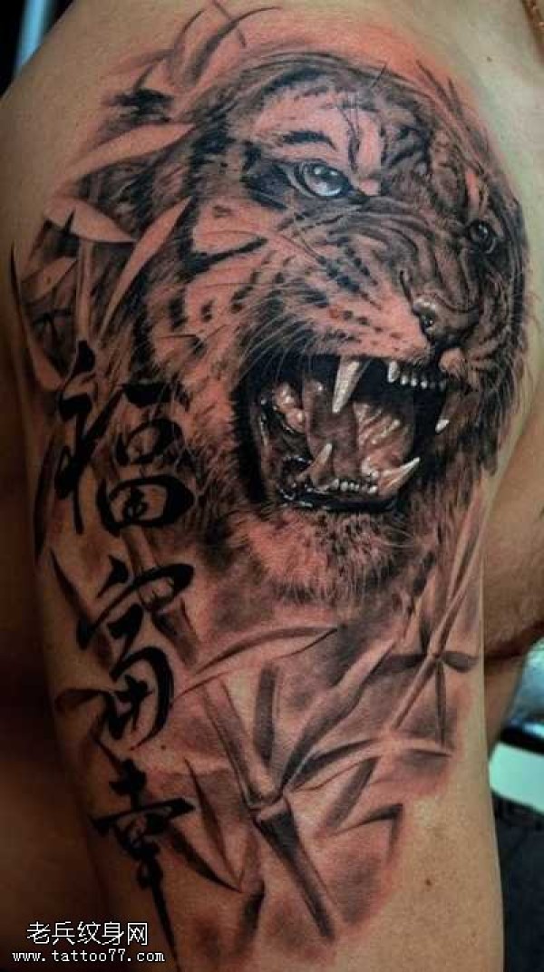 霸气半胛老虎纹身_动物纹身图案大全_纹身图吧