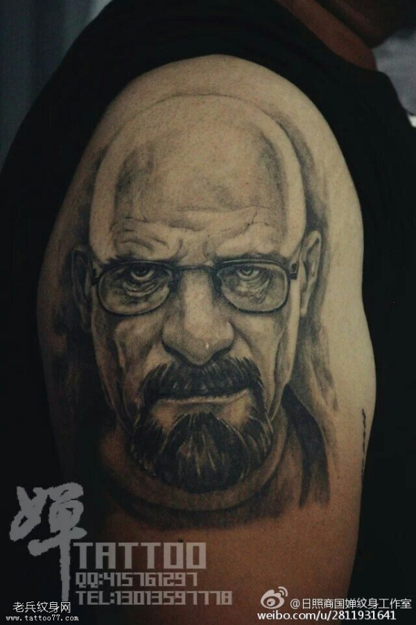 肩部经典写实的肖像纹身图案