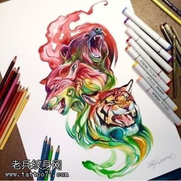 手稿水彩的动物纹身图案