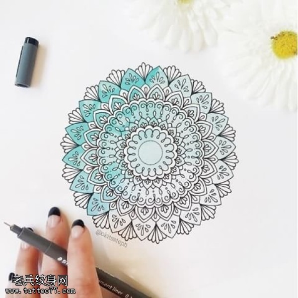 曼陀罗点刺梵花_100张曼陀罗点刺梵花纹身手稿图案