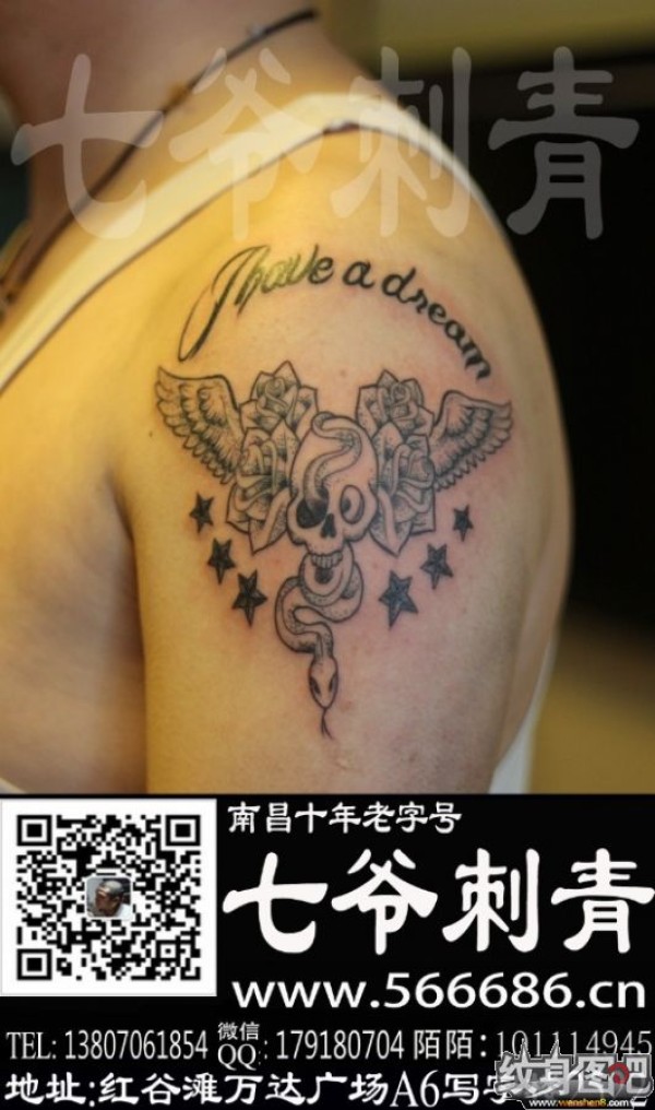 男人大臂黑白彼岸花骷髅_黑白纹身图案大全_纹身图吧