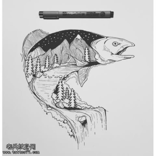 双鱼座纹身手稿_45张十二星座之双鱼手稿纹身图案