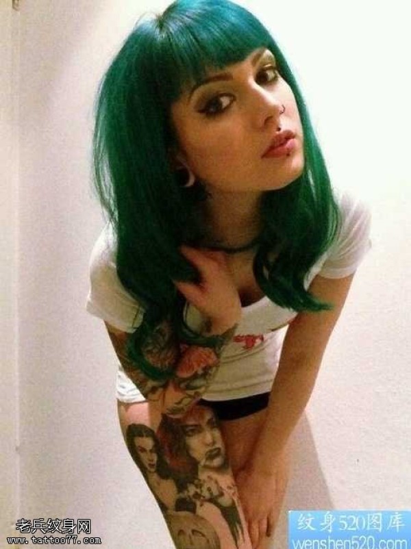 花臂欧美女性彩色纹身图案