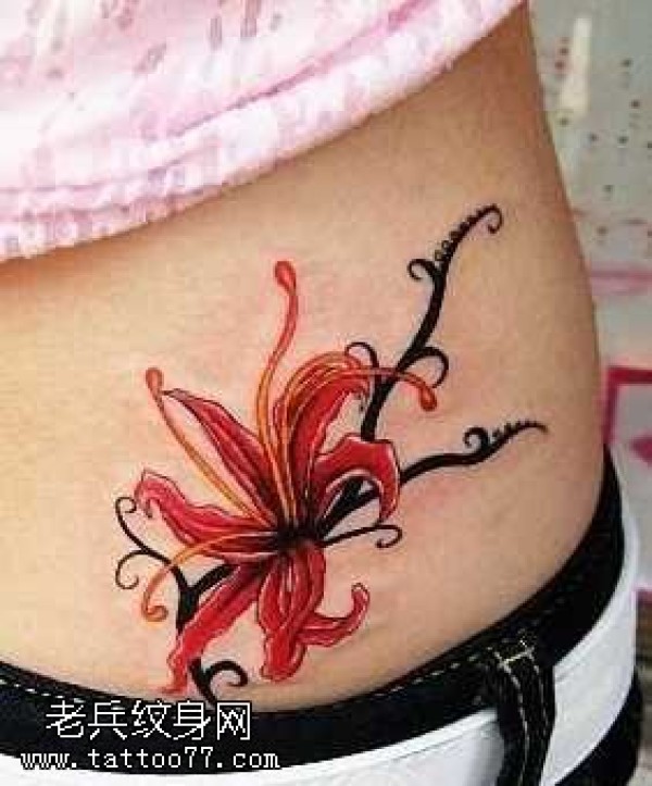 女生玲珑腰部的依兰花图案纹身女生腰部嫣红底_腰部纹身图案大全_纹身图吧