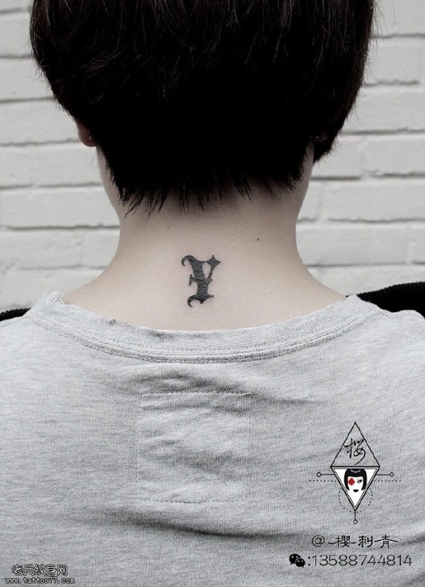 颈部脖子上的个性简约英文字母纹身图案