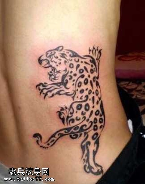 腰部霸气的图腾豹子纹身图案