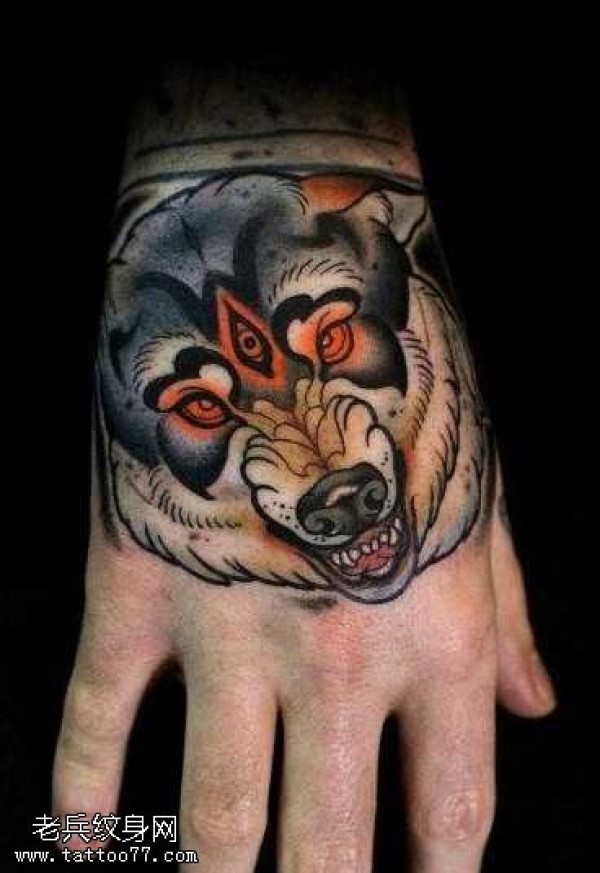 手背欧美狼头纹身图案