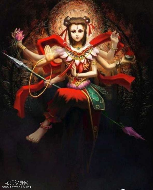 一款哪吒变身千手观音的纹身图案