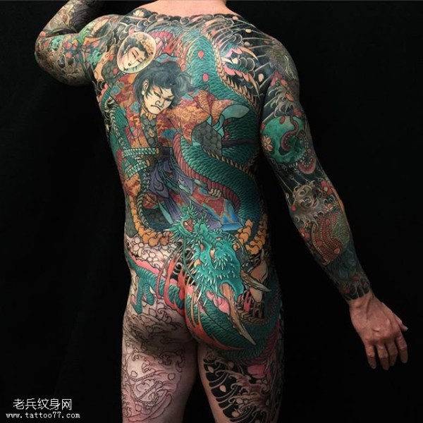 经典周处斩蛇纹身图案