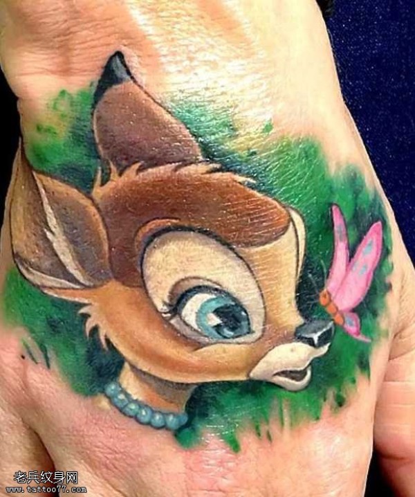 手背可爱的梅花鹿纹身图案
