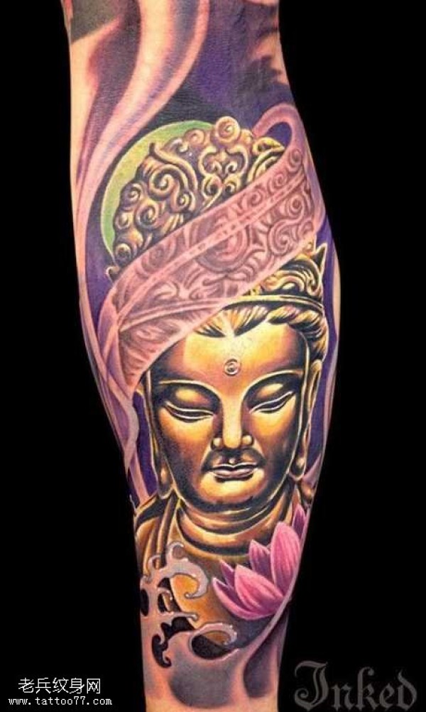 腿部金佛纹身图案