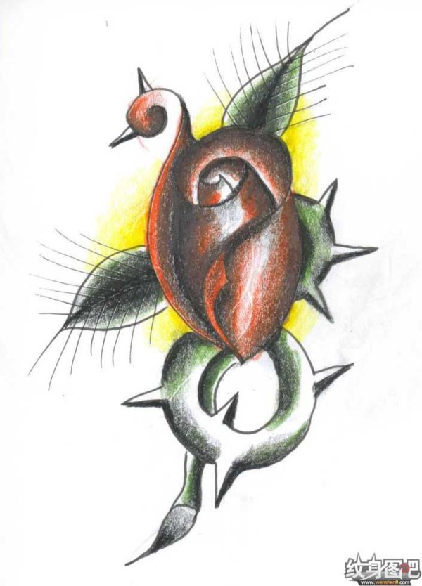 含苞欲放的玫瑰花纹身素材