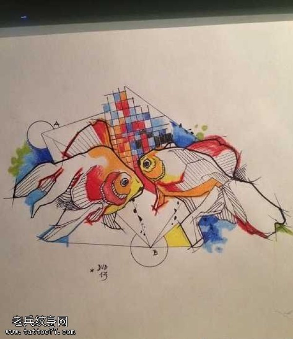 双鱼座纹身手稿_45张十二星座之双鱼手稿纹身图案