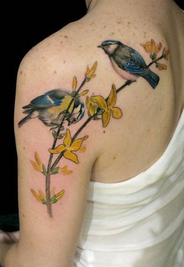 女生肩花纹身_15张女性双肩对称的肩花纹身图案作品图片