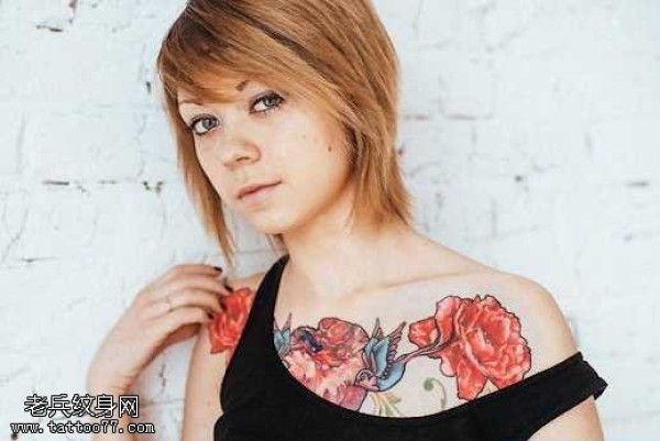 女性大花胸纹身_43张霸气漂亮的女性大花胸纹身图案作品