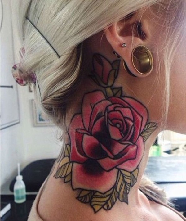 个性时尚的脖子上的花朵纹身