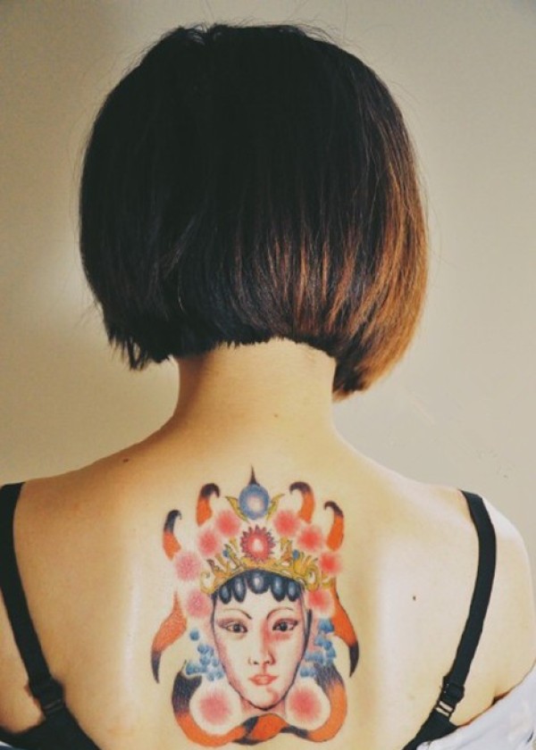 肩背部柔美温婉的花旦纹身
