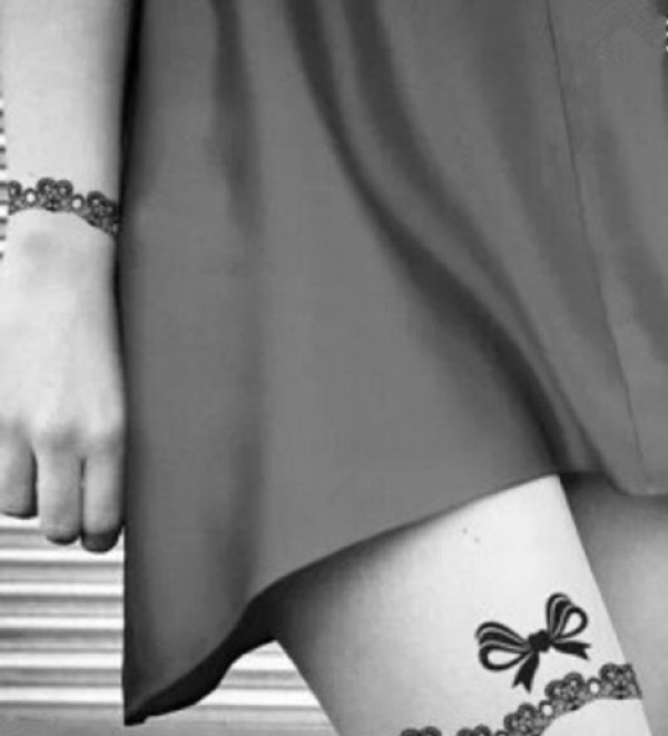 性感撩人的大腿上的蕾丝纹身