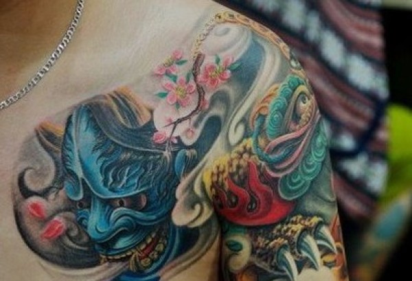 超帅气的般若半甲纹身图案