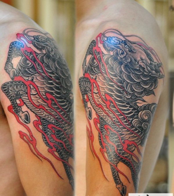 经典霸气的火麒麟手臂纹身